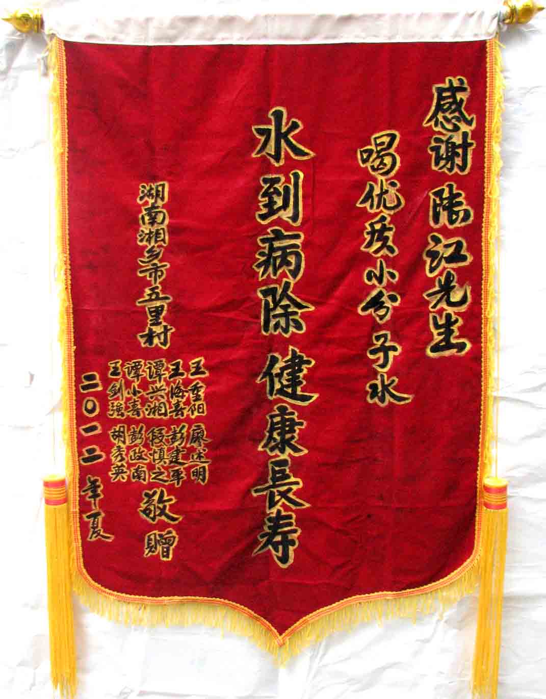 2015年潘志山主動(dòng)寫(xiě)一篇感想《我以親身實(shí)踐打破了冠心病、高血壓、糖尿病需終生服藥的神話》說(shuō)堅(jiān)持按發(fā)明人陸?江先生倡導(dǎo)的用已饑方食的方法合理膳食,我的健康狀況越來(lái)越好:糖尿病造成的視力下降有了明顯的恢復(fù),末梢神經(jīng)炎導(dǎo)致的指端潰爛現(xiàn)在完全痊愈,痔瘡自從飲用微小分子團(tuán)水半年后就再也沒(méi)有復(fù)發(fā)過(guò),氣滯血瘀造成的嘴唇暗紫也漸漸變得紅潤(rùn),舌下靜脈黑紫消失,足背的動(dòng)脈由以前的隱約感到跳動(dòng)現(xiàn)在變得清晰有力。[13]潘先生披露的訣竅,一是飲用微小分子團(tuán)水給脫水細(xì)胞補(bǔ)水,二是已饑方食”養(yǎng)生智慧,患者都能做到。